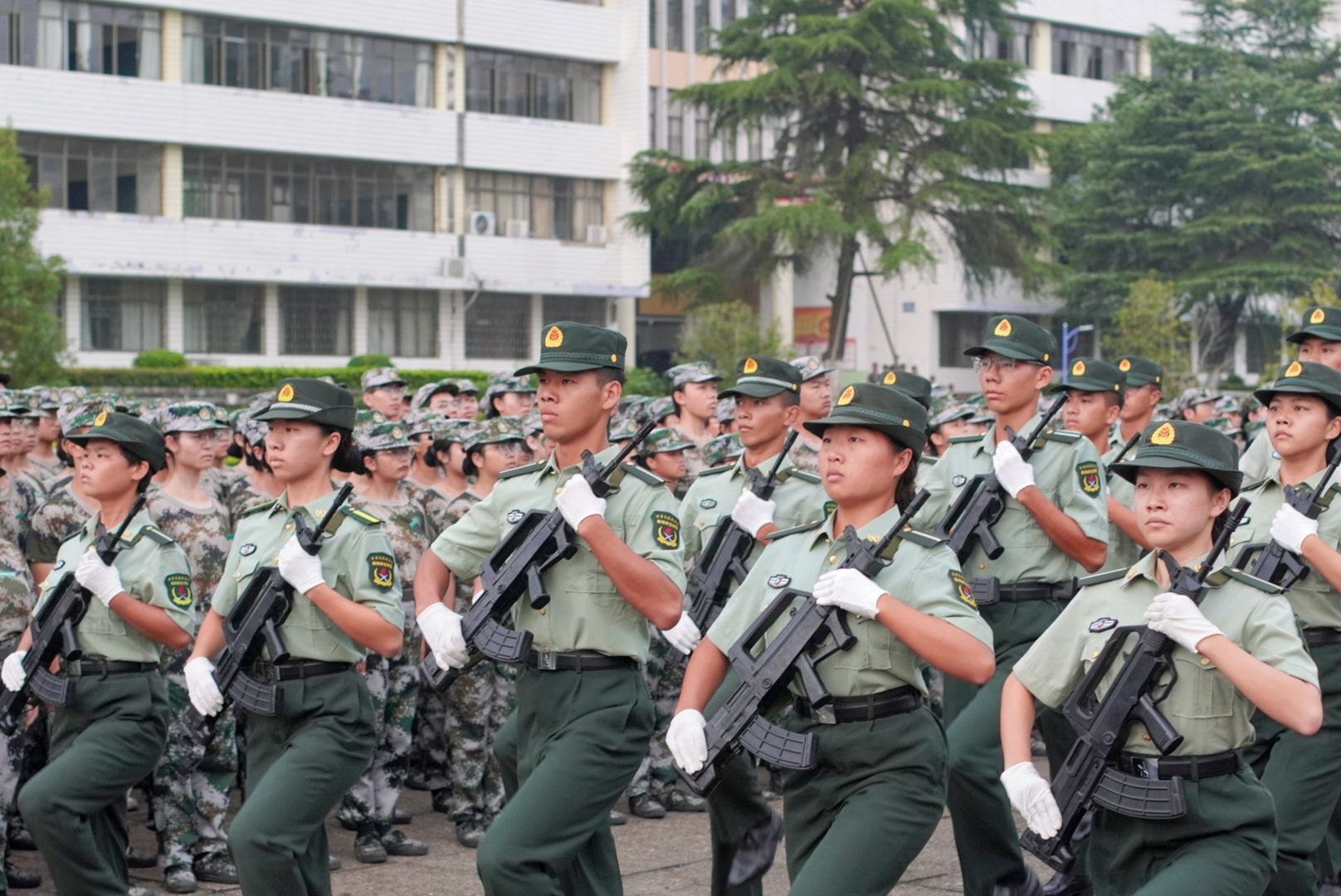 在场新生目光跟随国旗,满怀崇敬高唱国歌