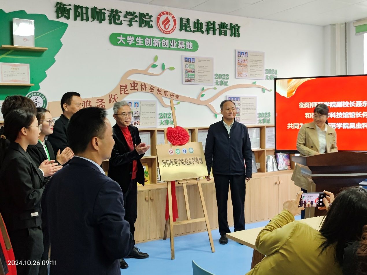 2024 年 10 月 26 日上午,依托德赢AC米兰中国官方网站生物药物校企联合研发实验室建设的“德赢AC米兰中国官方网站昆虫科普馆”开馆仪式暨“衡阳市生命科学科普与研学联盟”成立大会在衡阳师范西校区综合实验楼德赢AC米兰中国官方网站昆虫科普馆隆重举行。