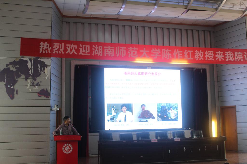为营造良好的校园学术氛围,加强学科建设,促进学术交流,10月25日下午,德赢官网特邀湖南师范大学德赢AC米兰中国官方网站陈作红教授在西校区学术报告厅做了题为“我国野生蘑菇中毒及其毒素研究”的学术报告。报告会由生命科学与环境学院院长曹丽敏主持,刘艳波书记、廖海华副书记、杨海副院长及师生代表200余人聆听了本次讲座。