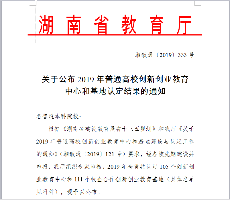 喜讯:经德赢官网积极组织申报,湖南省教育厅组织专家认真评审,2019年德赢官网新增3个省级创新创业教育中心和3个省级校企合作创新创业教育基地:其中曹丽敏院长负责的《德赢AC米兰中国官方网站生物技术校企合作创新创业教育基地》被湖南省教育厅认定为省级校企合作创新创业教育基地,这是德赢官网省级平台项目的首次突破,也祝愿德赢官网师生勠力同心,学院事业蒸蒸日上!