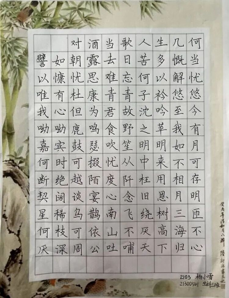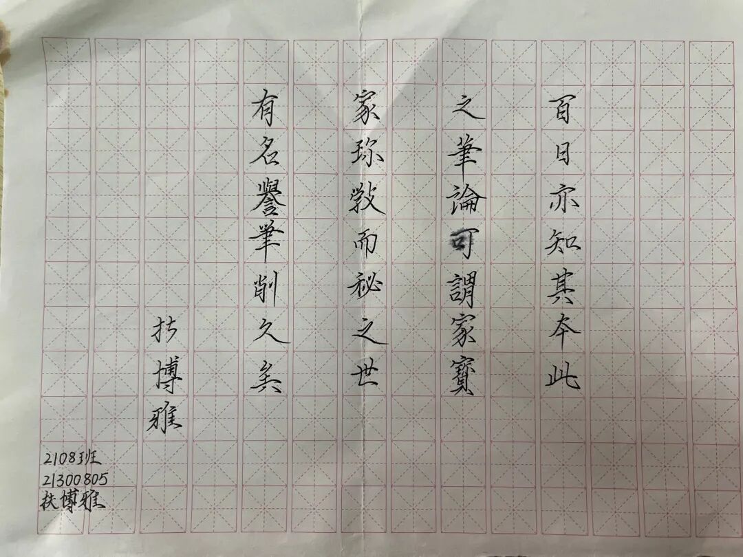 在日常教学中,教师的板书就是学生典范,一笔一画都给学生起着榜样作用。德赢官网始终注重师范生的书法,科技创新卓越师范班的同学们在开课期间认真学习书法,交上来的作品各具特色,或舒展大方、清秀雅致,或苍劲有力、入木三分,看起来韵味十足,展现了扎实的书写基本功。