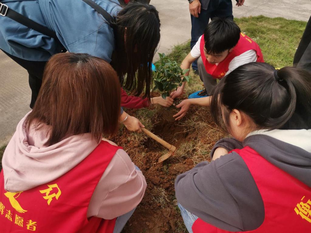 三月学雷锋,一起动起来。值新绿,向未来,一抹绿色点装新意,栽种绿意寓意希望。今天3月12日,是第四十四个植树节。今天上午9:30,在校团委、后勤处的大力支持下,生命科学与环境学院分团委举办了“践行劳动教育,共建绿色校园”主题植树节活动,活动在西校区排演厅旁空地举行。生命科学与环境学院辅导员老师刘树芬、后勤处校园中心的几位老师、以及护绿创绿和生态方舟社团的同学们参与了此次义务植树活动。