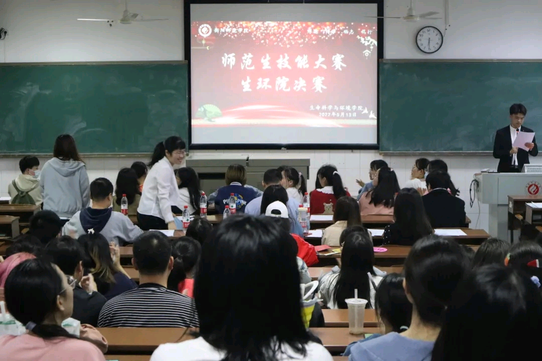 为进一步提高学生的教师教育教学基本技能,德赢官网为学生搭建了一个锻炼和展示自我风采的平台——师范生技能大赛。2022年5月13日下午六点半,生命科学与环境学院师范生技能大赛决赛在外语楼301顺利拉开帷幕,院长曹丽敏、副书记蒋湘祁、专业教师江伟民、王志新等以及往届的优秀参赛选手出席了本次比赛并担任评委。
