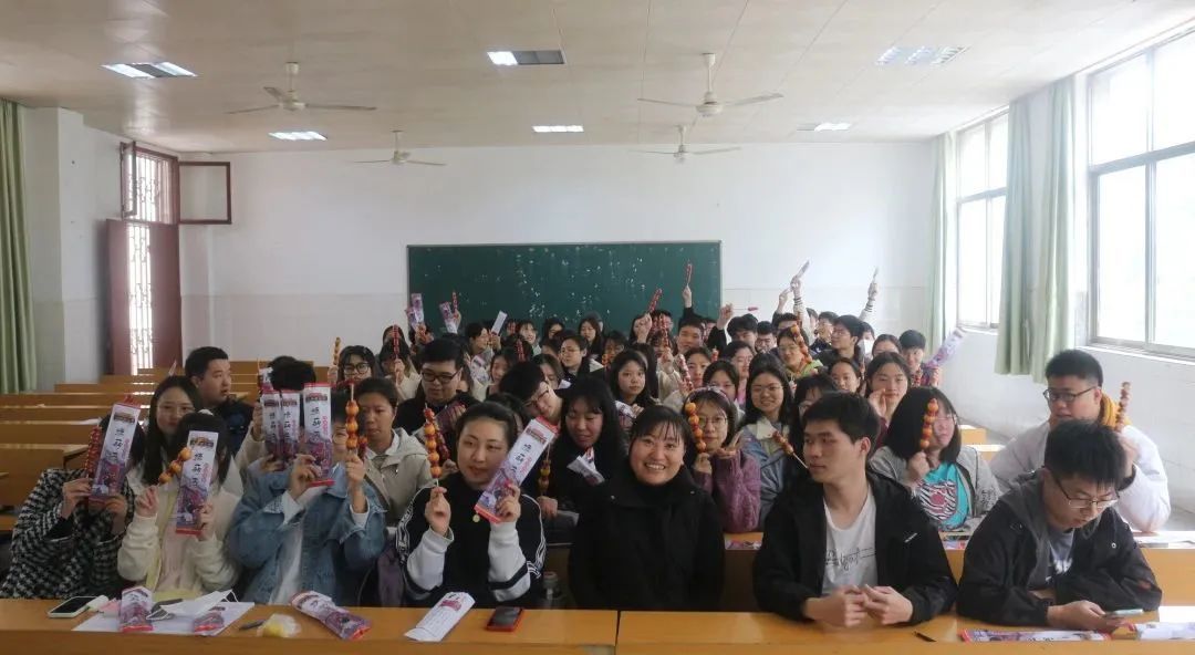 是谁见过凌晨的校园,听过清晨的鸟鸣,只为奔赴一场战斗?没有满天弥盖的硝烟,没有隆隆作响的轰炸,只有沉溺于深海般的静默,只有考研学子们顽强的拼搏。在大家考前想要放弃的时候,刘树芬老师帮助考研学子缓解压力,坚定信心,鼓舞士气,并与同学们约定——给坚持到最后的、踏进考场的同学们一份特别的礼物。刘树芬老师对考研学生细心叮嘱为了兑现当初的诺言,2023年3月12日上午,刘树芬老师自掏腰包给同学们准备了一份惊喜,将精心准备的糖葫芦分发给每一位考研学生,为即将踏上人生新征程的毕业生们送去了最真诚的慰问与祝福。