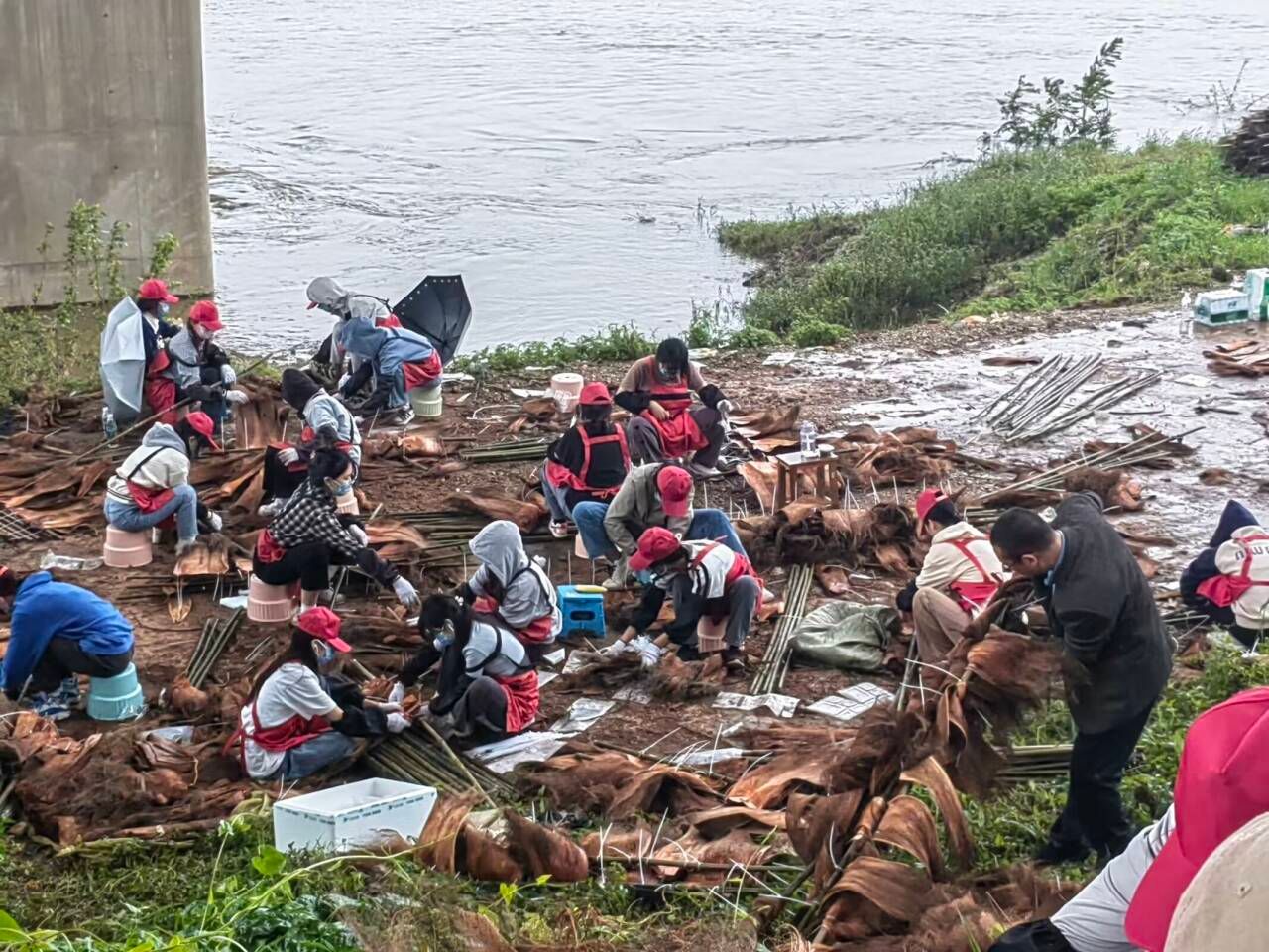 有了上一次的活动经验积累,师生们很快就进入了工作状态,在技巧与协作的加持下,大家干得游刃有余。“在雨天制作人工鱼巢确实辛苦,当看到自己制作的一连串鱼巢被拉下水面,意味着无数小鱼将从我们的鱼巢中走向更广阔的世界,我们的心中只有满满的自豪。”生命与科学学院的学生张钰维说。