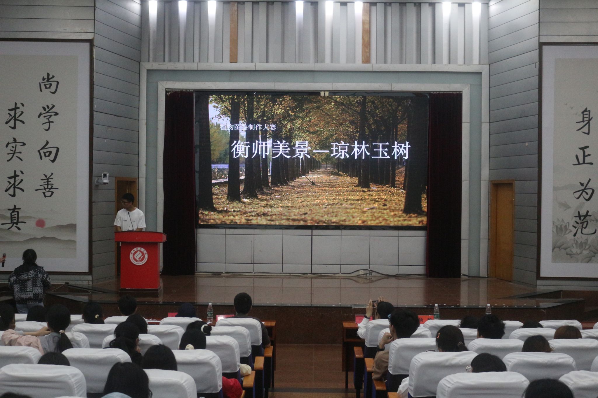 选手们通过对PPT的展示与解说,以及部分纸质稿的补充呈现,为大家带来了一场精彩的比赛!他们从植物的植株特征、药用价值、生活价值及分布等方面向大家介绍了我们学校的植物。从被大家深爱的“玫瑰”——月季,到花圃丛中不知名的小清新——白花紫露草;从“枫叶红于二月花”的红爪槭到万年常绿的罗汉松;从花开满枝正盛的千屈菜,到开败不久的人称“千里香”——海桐……通过选手们的娓娓诉说,让我们了解到那些绽放开放的美丽以及那些角落静谧的美好。