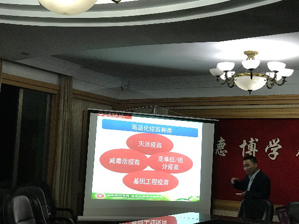 首先由主讲人唐青海博士向大家作出主题为“从流感到流行性腹泻——传染病防治所思”的报告。唐博士首先为我们介绍了甲、乙、丙类传染病发病数的病种,后说明了甲、乙类传染病按传播途径统计的死亡人数。接下来的时间里唐博士为我们详细介绍了“载体疫苗”、“商品化疫苗种类”、“疫苗研制使用的技术体系”、“疫苗技术未来发展方向”、“疫苗剂型与接种技术的新方向”、“传染病的传播与控制原则”等方面的知识。