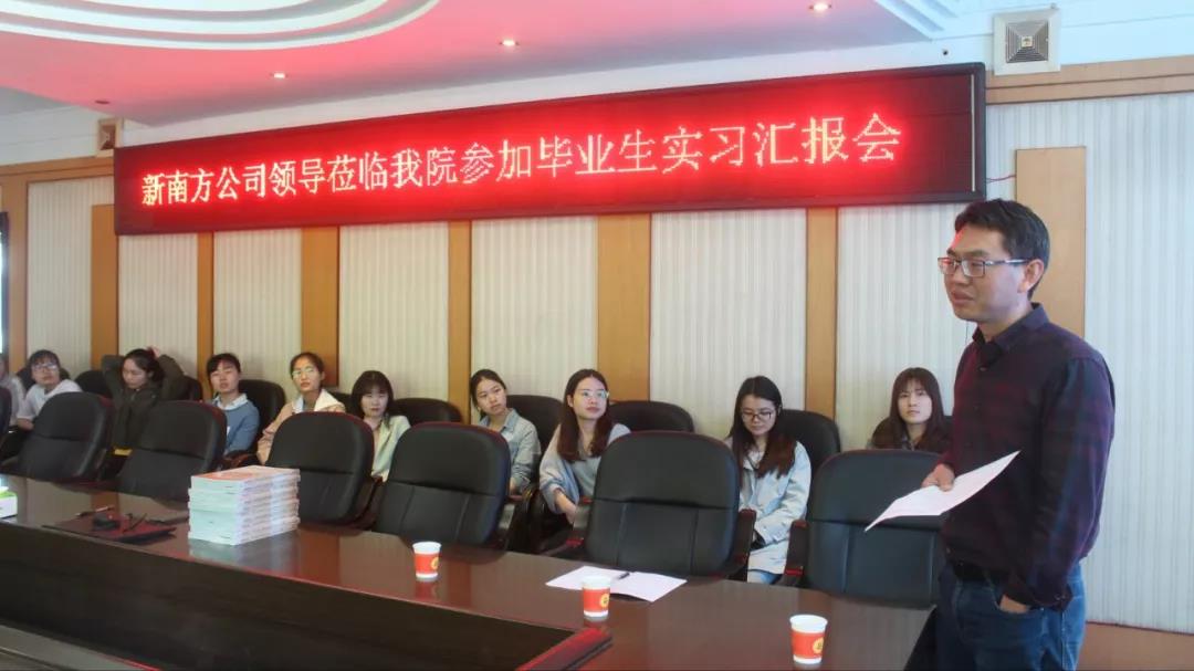 5月10日上午9点30分,新南方公司董事长喻正军博士一行于西校区行政办公楼308会议室参加了德赢官网毕业生实习汇报会。来自德赢官网的五位实习生返校,生命科学与环境学院党总支书记刘艳波、院长曹丽敏,副院长易诚、杨海以及部分学生代表参加了汇报会。
