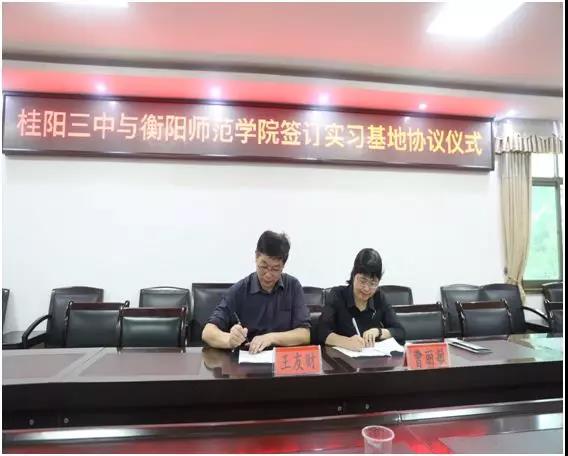 考察期间,德赢官网领导、老师走访了硕远检测公司的实验用房并与该公司领导进行了深入的座谈,初步达成了建立实践教学基地的意向。后又与桂阳县教育局副局长曹善忠、桂阳三中校长王友财进行了亲切的交流,经双方协商最终达成共识,签订《德赢AC米兰中国官方网站校外实习协议书》,并合影留念。