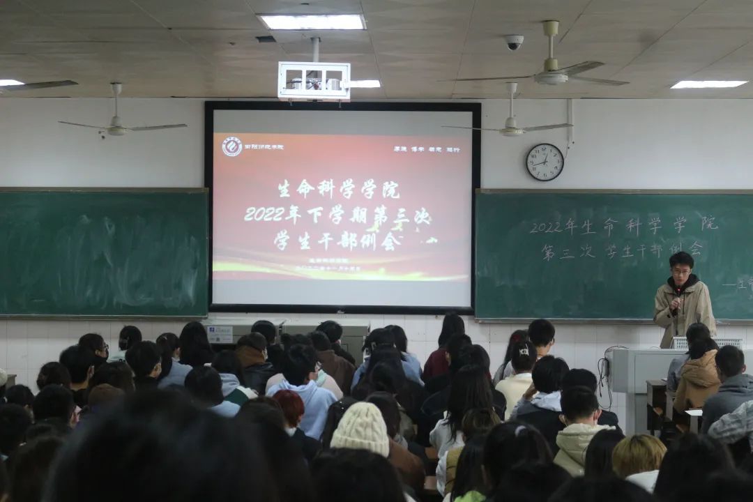 会议伊始,唐乾翔老师强调了近期的工作重点,他告知同学们在校期间不得随意离开学校,要遵守疫情防控的相关规定并传达了疫情防控期间学生处理办法。他指出学生干部要严格落实查寝制度,配合学院工作,不敷衍塞责,在工作的过程中要认真负责,坚决杜绝消极工作和散漫的工作态度。随后,唐老师介绍了近期的团学活动和入伍意愿征集相关事项,鼓励同学们积极宣传和参与。