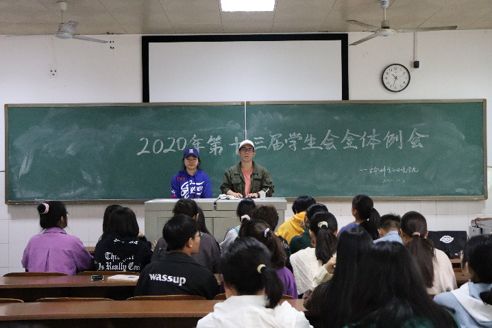 11月1日上午10点半德赢官网于西外语楼召开第十三届团委学生会第一次学生干部例会。该会议由执行主席杨权和团副袁嘉主持。第十三届团委学生会全体学生干部聆听本次会议。