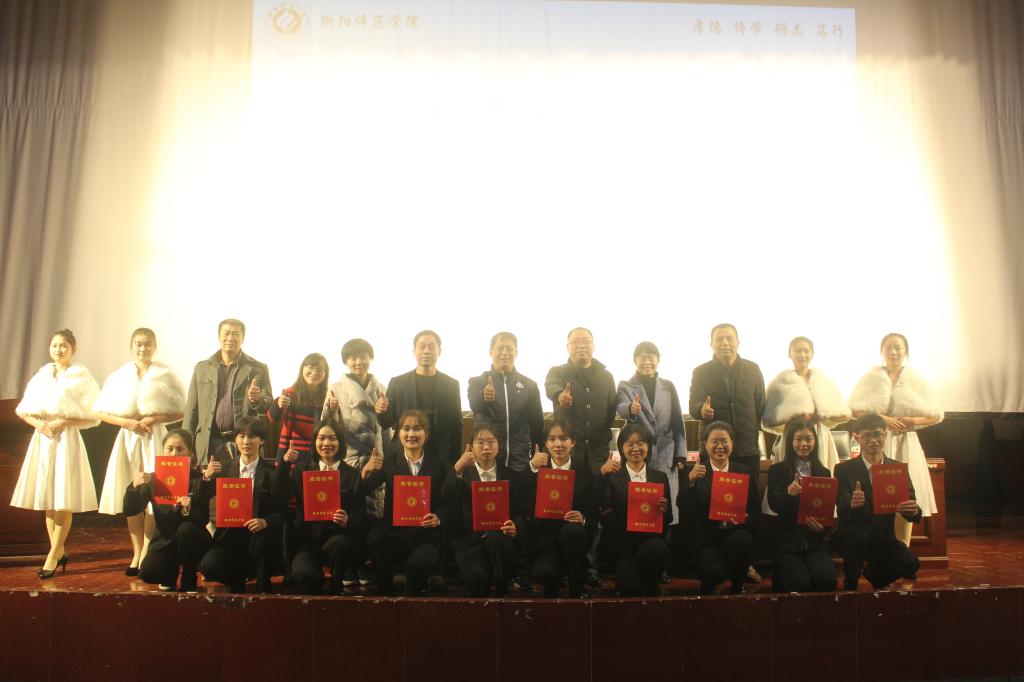 会上,德赢官网副院长易诚宣布了获奖名单,领导嘉宾为获奖学生颁奖。2017生物科学3班、2018生物科学4班获得“学校先进集体”称号。易程、胡聪、丁娟三人组织的创新创业项目分别活动国家级一等奖、二等奖、三等奖。王燕、高嘉灵等九名学生获得“十佳卓越寝室长”的称号。刘瑞梅、曹琼玲等十名学生获得“十佳卓越班干部”称号。陈雅玲、黄菲等十五学生获得“十佳卓越团学干部”称号。石美琪、武小琪等共16人分别作为校三好学生代表,校优秀学生干部代表上台领奖。黄菲、张志灵、宋粲瑶、郭俊灵四人分别获得十大笃行先锋,十大道德模范,道德模范提名奖,学习标兵提名奖。