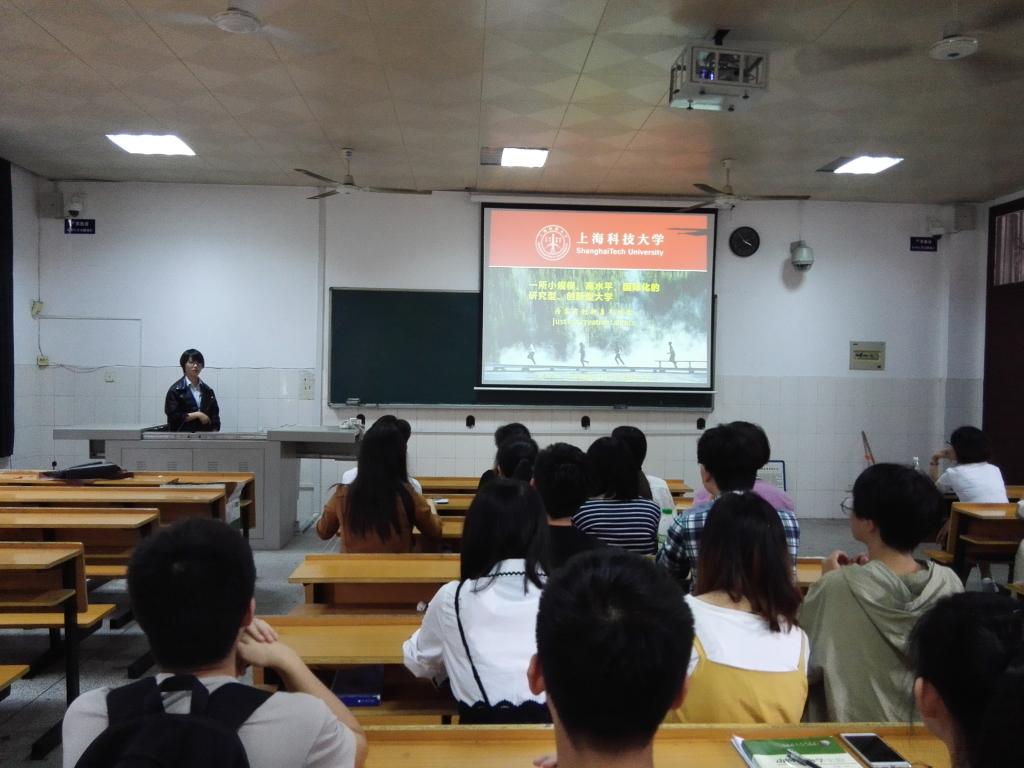 李羽师姐给同学们介绍了上海科技大学庞大的师资力量、先进的技术、配套齐全的实验设备、格外诱人的人才待遇、多姿多彩的研究生生活,引得同学们羡慕不已,同时更加坚定了他们报考理想大学的决心。