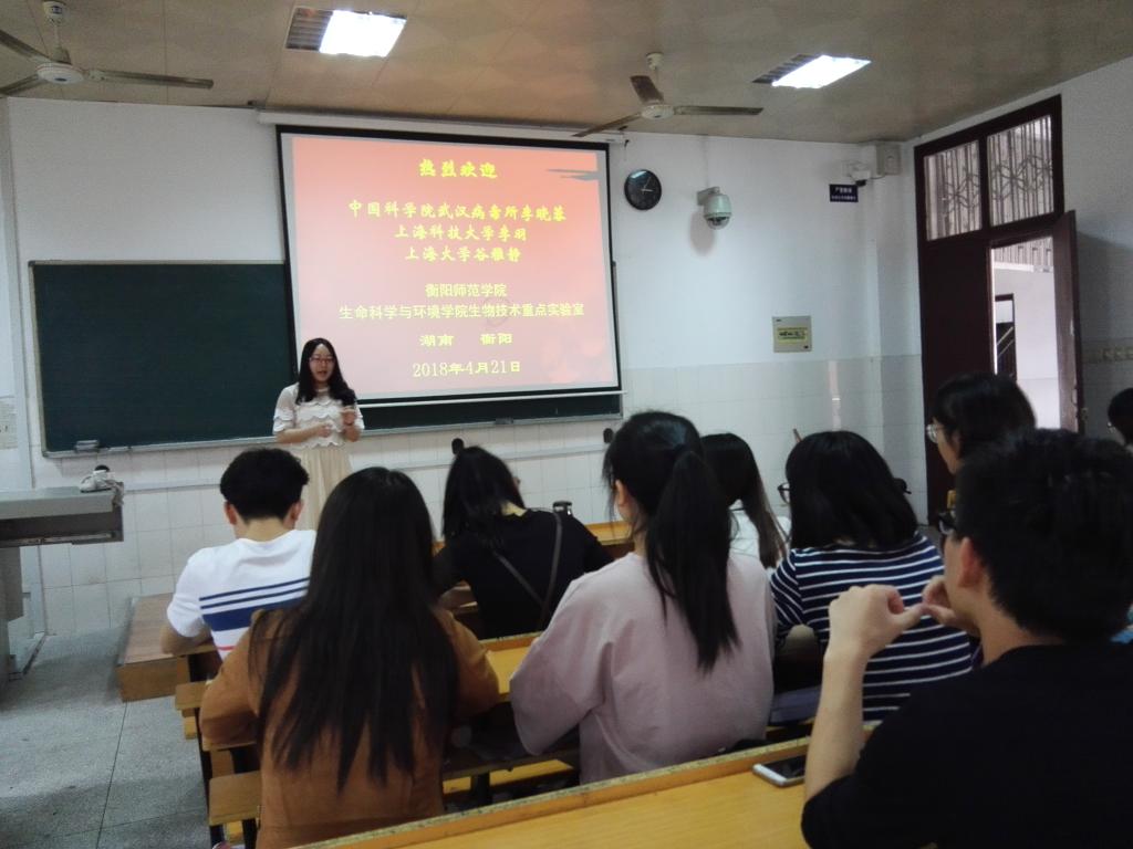 天朗气清,惠风和畅,4月21日,名校研究生与德赢官网本科生考研交流会在西外语楼102成功举行,应唐青海博士邀请,中国科学院武汉病毒所李晓蓉、上海科技大学李羽和上海大学谷雅静3位研究生来到生命科学与环境学院与德赢官网2015级动物科学专业学生和生物技术重点实验室学员分享考研经验和研究生生活,杨海副院长、唐青海博士以及2015级动物科学专业、2016级、2017级生物科学专业学生参加了此次交流会。