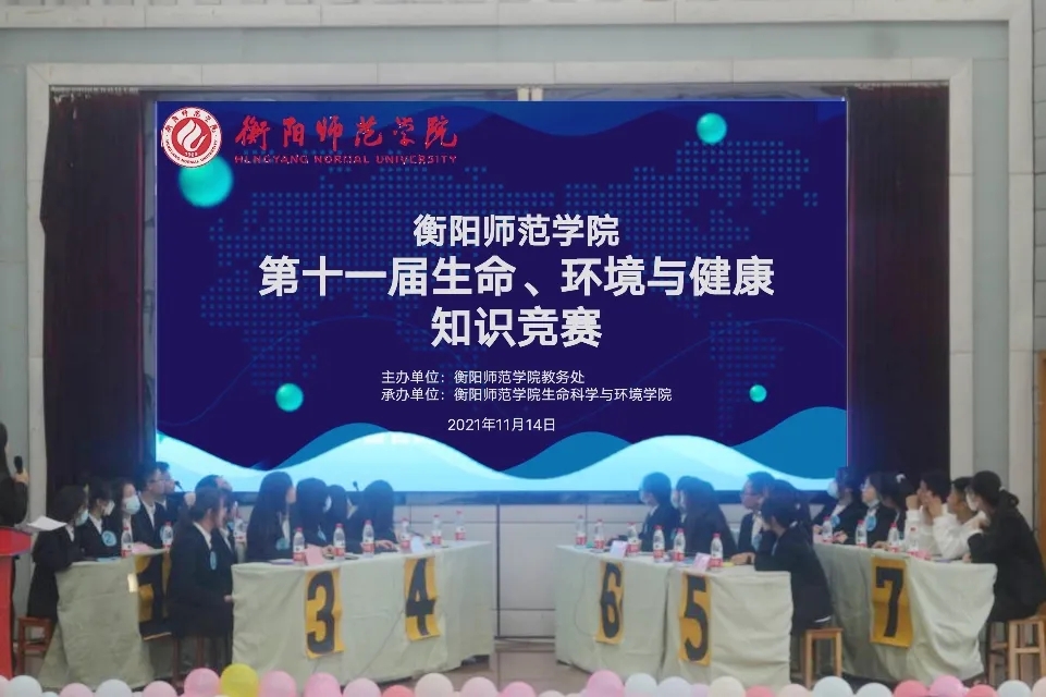 为活跃校园文化氛围,培养同学们的竞争意识和创新精神,进一步培养同学们珍爱生命、热爱生活的人生态度。2021年11月14日,由德赢AC米兰中国官方网站教务处主办、生命科学与环境学院承办的“生命、环境与健康知识竞赛”在西校区模拟法庭正式举行。生命科学与环境学院书记彭晖同志,院长曹丽敏教授,副书记蒋湘祁同志,副院长易诚教授,副院长杨海老师,辅导员许若霏老师,系主任江伟民老师莅临比赛现场,南岳学院院长王芳宇教授莅临下午场比赛现场,专业老师担任本次大赛评委。