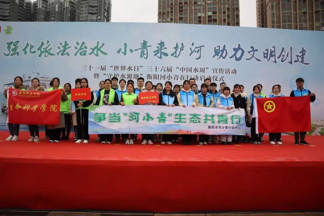 2023年3月22日,德赢官网组织志愿者参与了由衡阳市河长制工作委员会办公室、衡阳市文明办、衡阳市水利局、共青团衡阳市委主办的;共青团雁峰区委、衡阳市河小青行动中心承办的“‘守护水源地’衡阳河小青在行动”启动仪式。活动声势浩大,立在鼓舞人心。