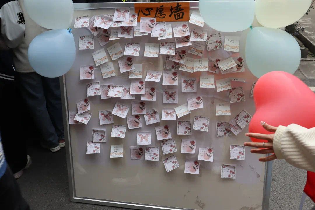 活动现场热闹非凡,不少女生被“星语心愿”活动所吸引,在这个特别的女生节,女孩子们可以将自己的小小心愿写下,并将其贴在心愿墙。同时在活动的不同时间段,设置着不同的秘密幸运色,如果所穿服装与幸运色相同,则能收到由院学生会精心准备的礼品一份~