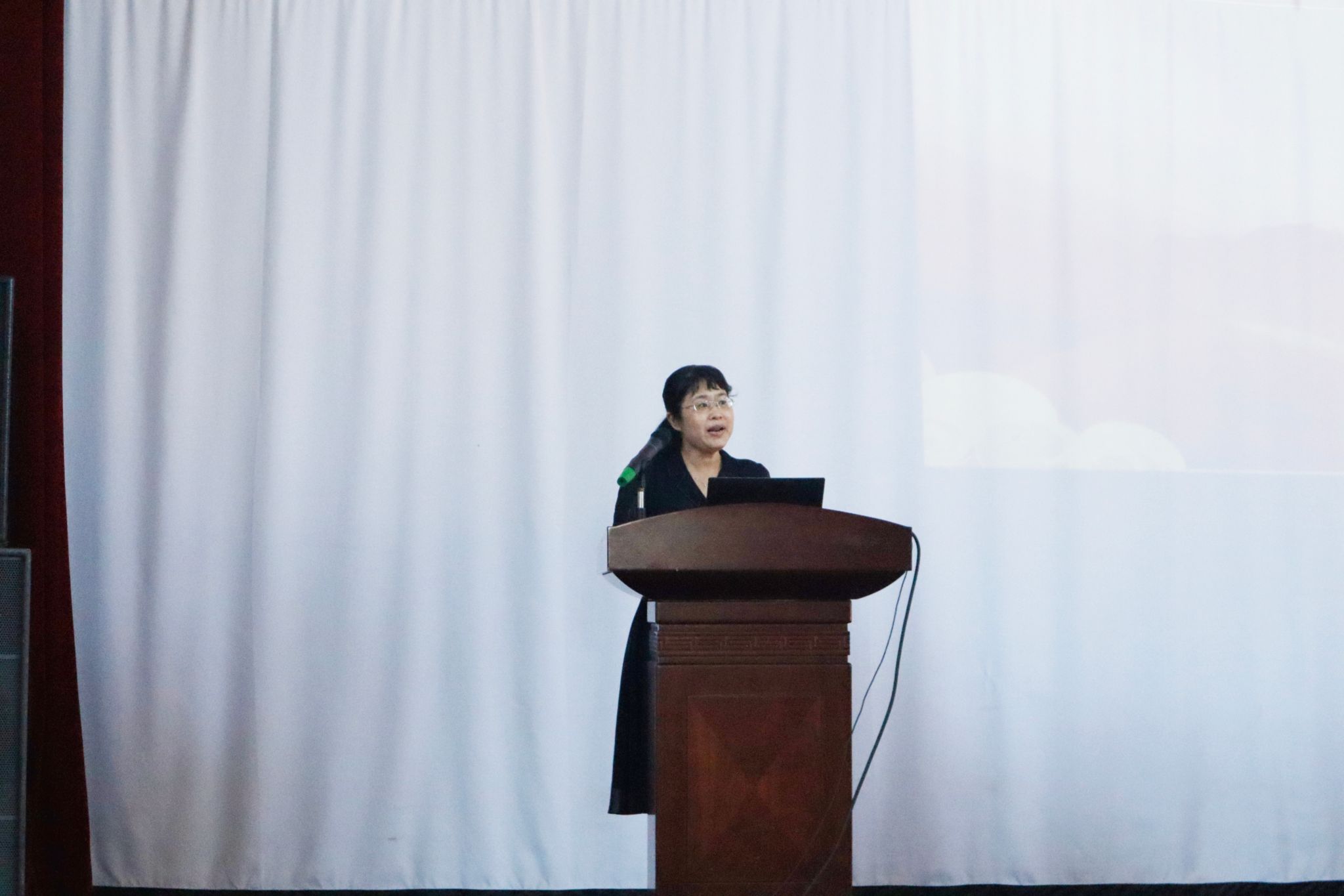 最后,在热烈的掌声中,学院党总支书记曹丽敏上台致辞,寄语全体新生要“三心二力”:要不忘初心,成为自己想要成为的人;要行动用心,怎么样成为更好的自己;要常怀宽容之心,善待自己和他人。要不断强化主动学习的能力和合理利用业余时间的能力。希望新生们认准目标,锲而不舍,开创属于每个人独一无二的未来。