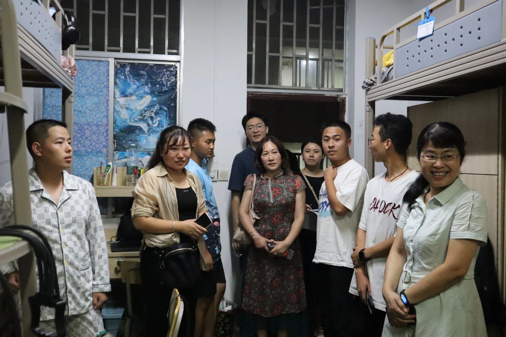 全新的面貌,崭新的气象。为全面了解23级新生的住宿情况,2023年9月8日晚,学院党总支书记曹丽敏、党总支副书记陈雅斐、团委书记刘树芬、辅导员唐乾翔、付蓉、曹海鸥老师一行深入新生宿舍,走访看望德赢官网全体新生。