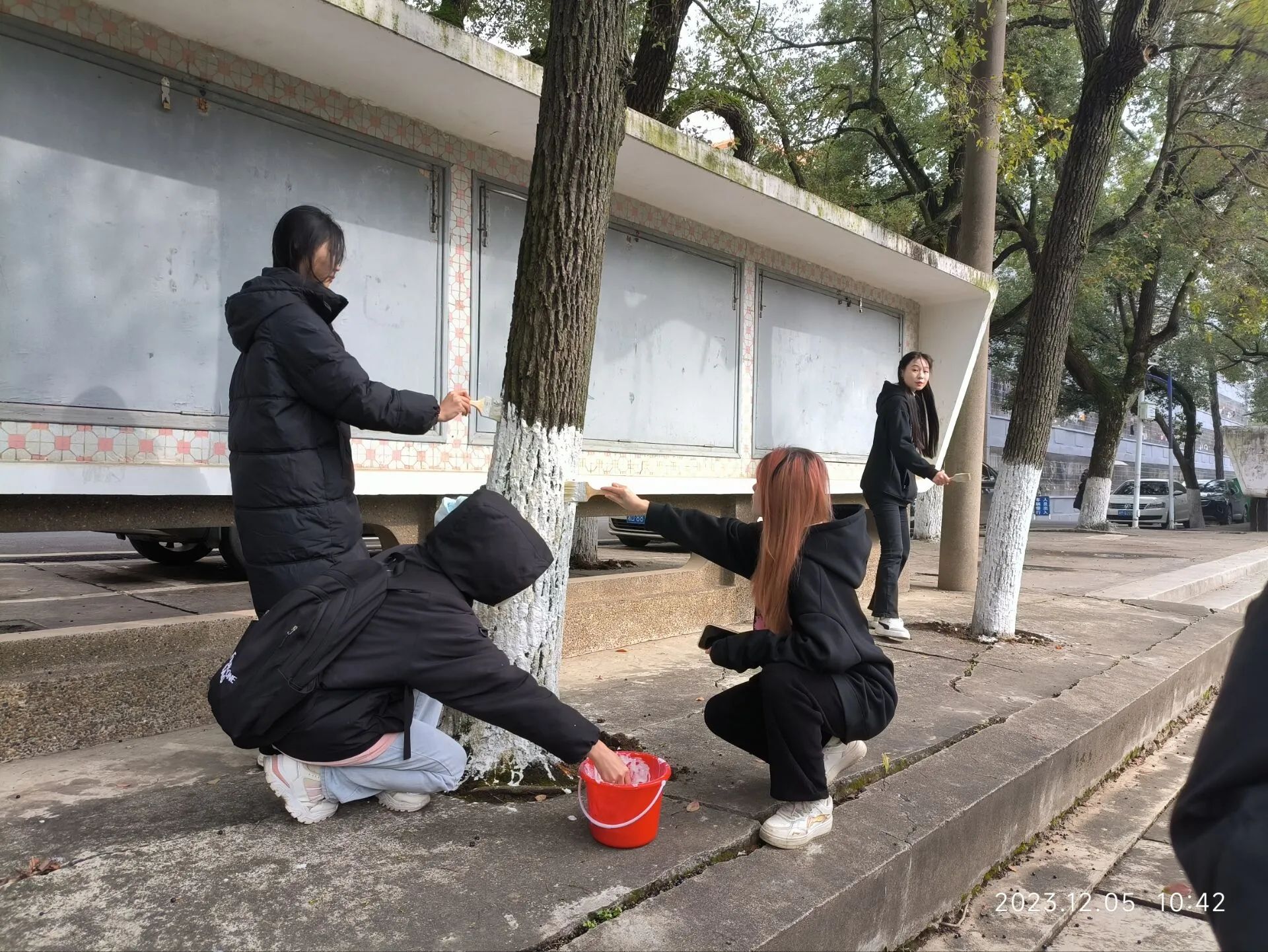 活动内容:志愿者们为德赢AC米兰中国官方网站西校区校园内的树木涂抹石灰水,为其防虫、保暖。