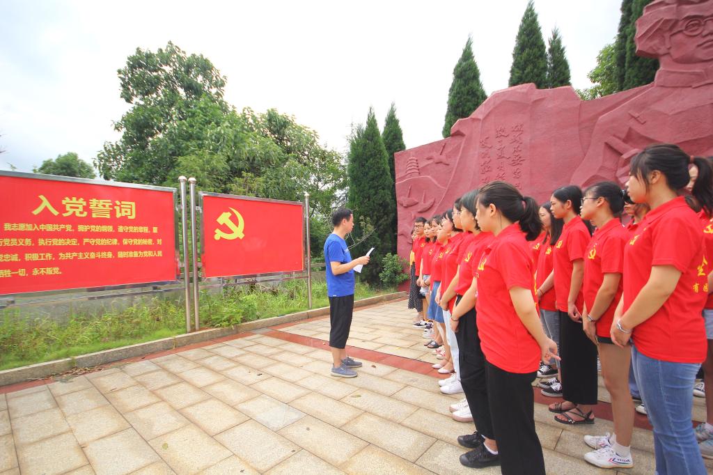 紧接着,全体党员在学生支部副书记董琼的带领下重温入党誓词。右手握拳举于右耳上方,眼神坚定望于前方,信念坚定,声音洪亮,响彻广场。