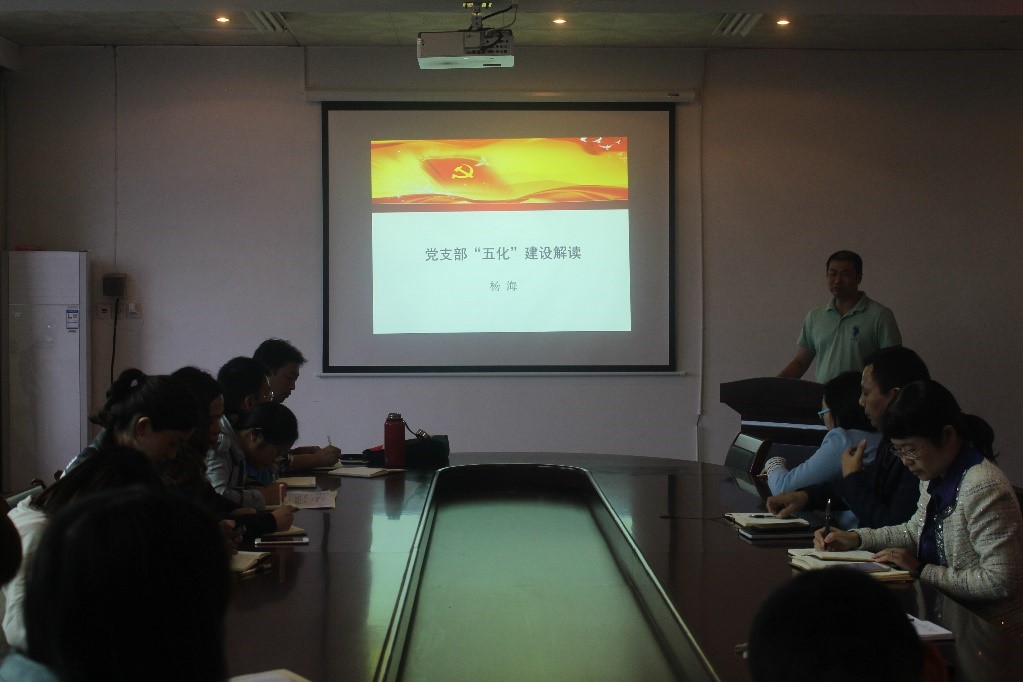 10月16日下午五点半,生命科学与环境学院于西校区千禧楼六楼会议室组织开展教工支部学习会。院长曹丽敏、副院长易诚等教师党员到场进行学习,副院长杨海作题目为《党支部“五化”建设解读》的理论学习报告。